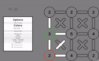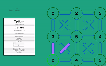 Number puzzle game in the realm of Sudoku. Click the lines to activate or deactivate them, making sure the connected active lines add up to the number within the circle, with no overlapping active lines.